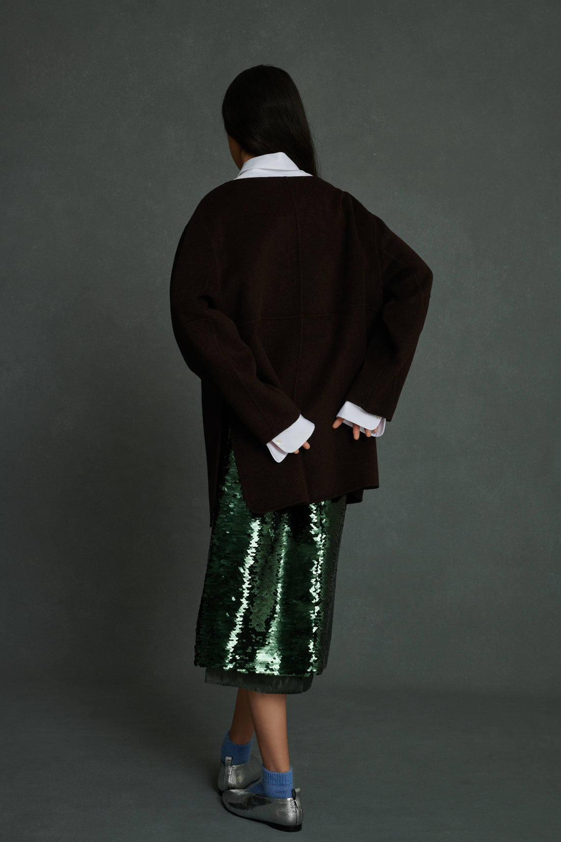 La mannequin is 1m80 (5'11) tall and wears a size 2.